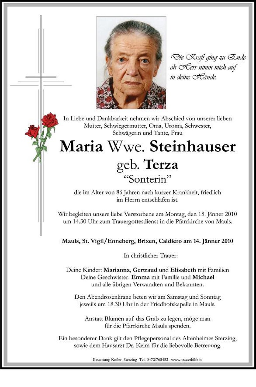 Wir begleiten unsere liebe Verstorbene am Montag, den 18. Jänner 2010