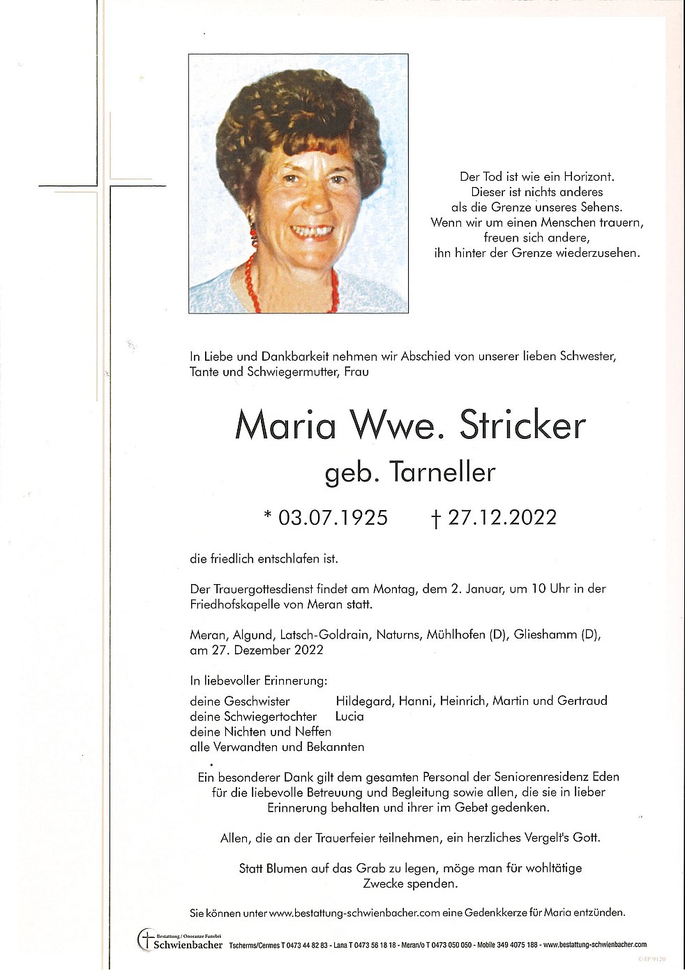 Trauerfeier: 02.01. - 10:00 Uhr Stadtfriedhof Meran