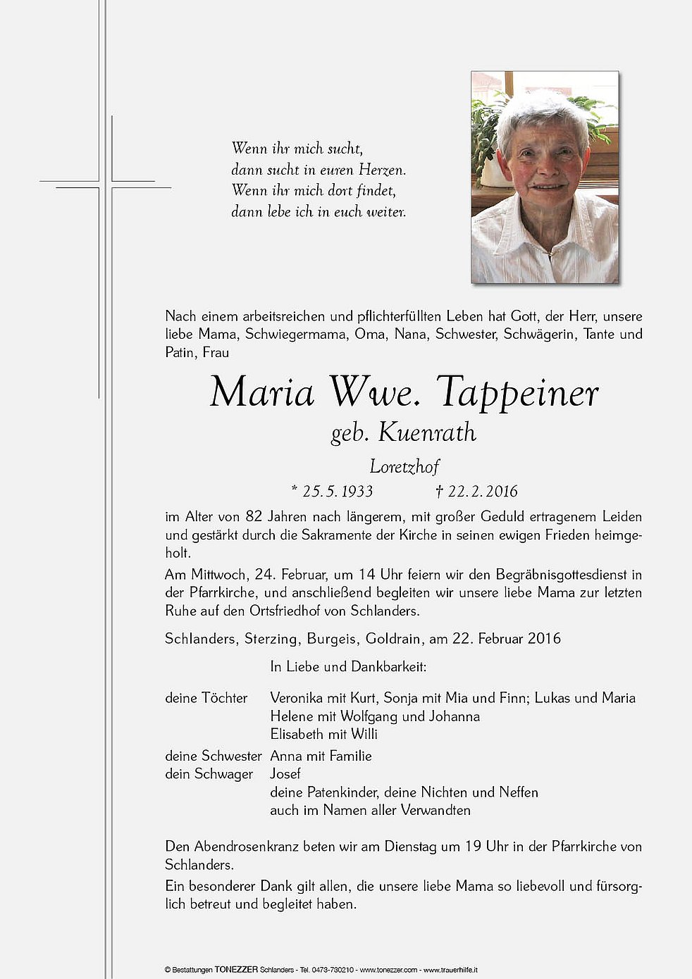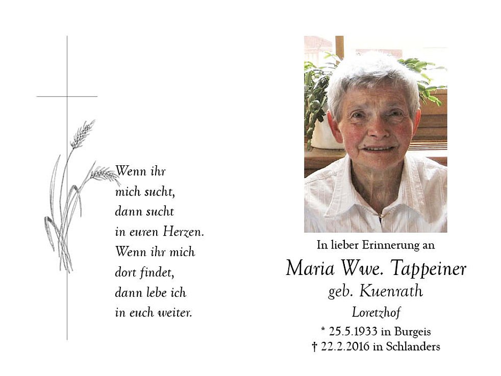 Maria Wwe. Tappeiner geb. Kuenrath