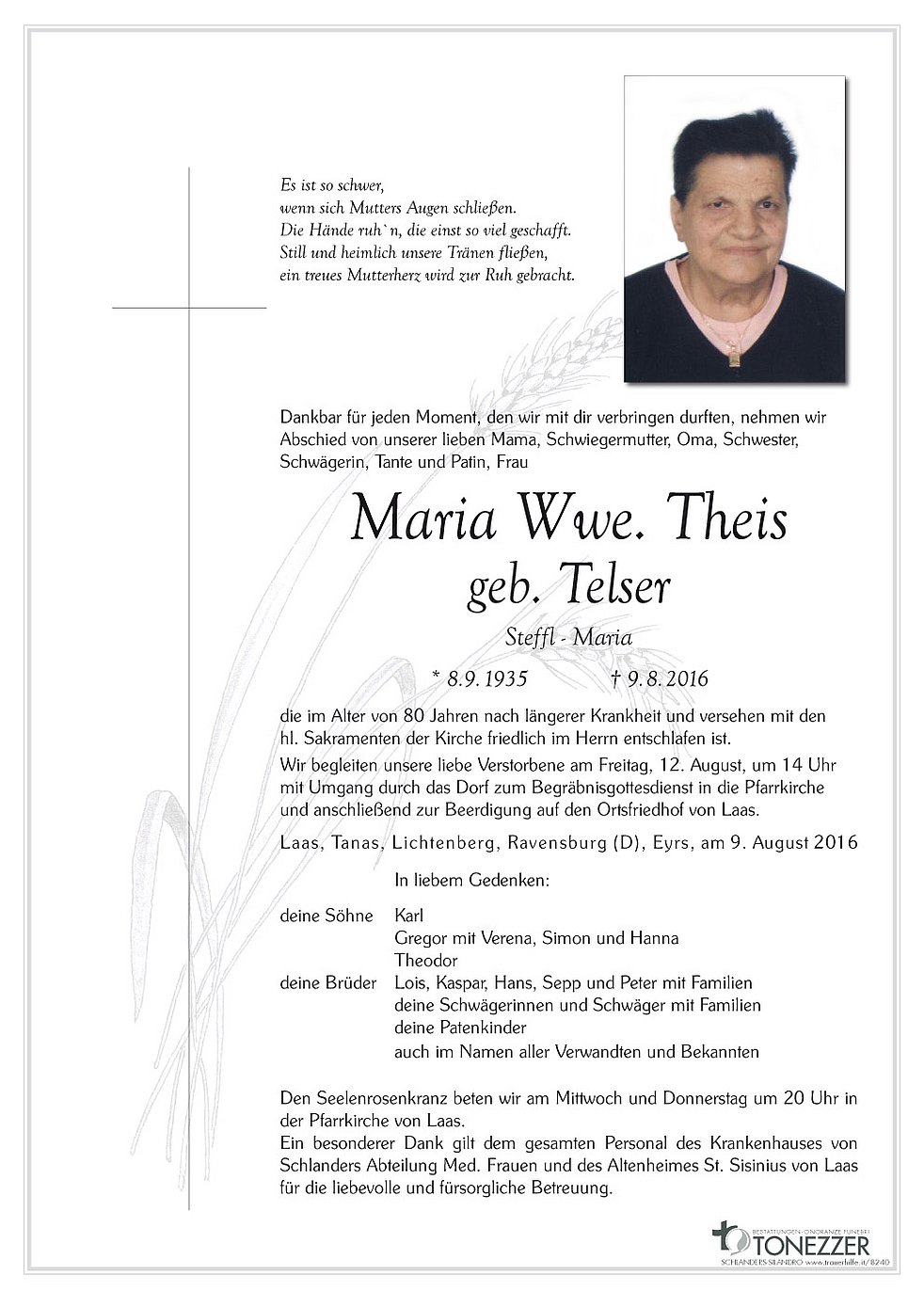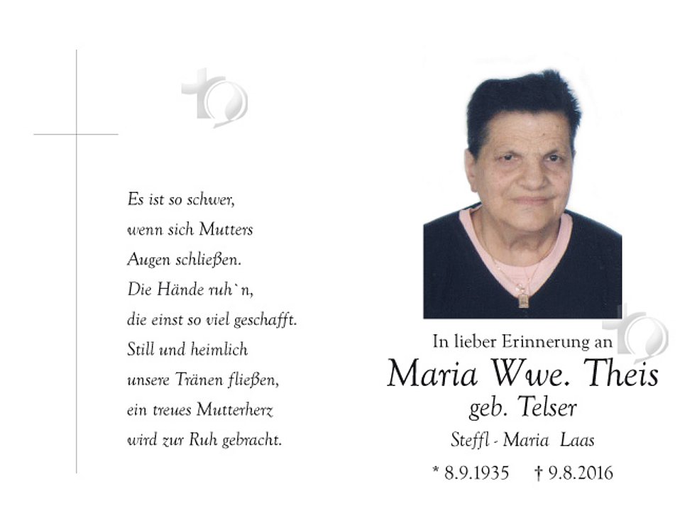 Maria Wwe. Theis geb. Telser