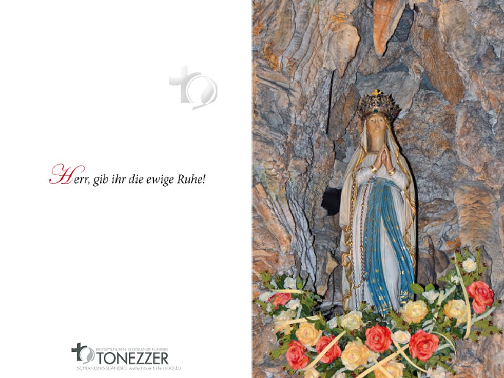 Wir begleiten unsere liebe Verstorbene am Freitag, 12. August, um 14 Uhr mit Umgang durch das Dorf zum Begräbnisgottesdienst in die Pfarrkirche und anschließend zur Beerdigung auf den Ortsfriedhof von Laas.