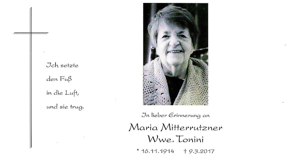 Gedankt sei dem Pflegepersonal des Altenheimes Villa Armonia in Bozen für die Betreuung und allen, die an der Beisetzung der Urne und am Gottesdienst teilnehmen.