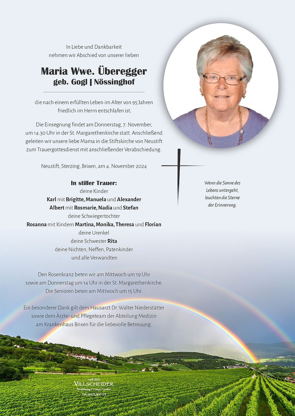 Begräbnisgottesdienst: 07.11. - 14:30 Uhr Neustift
