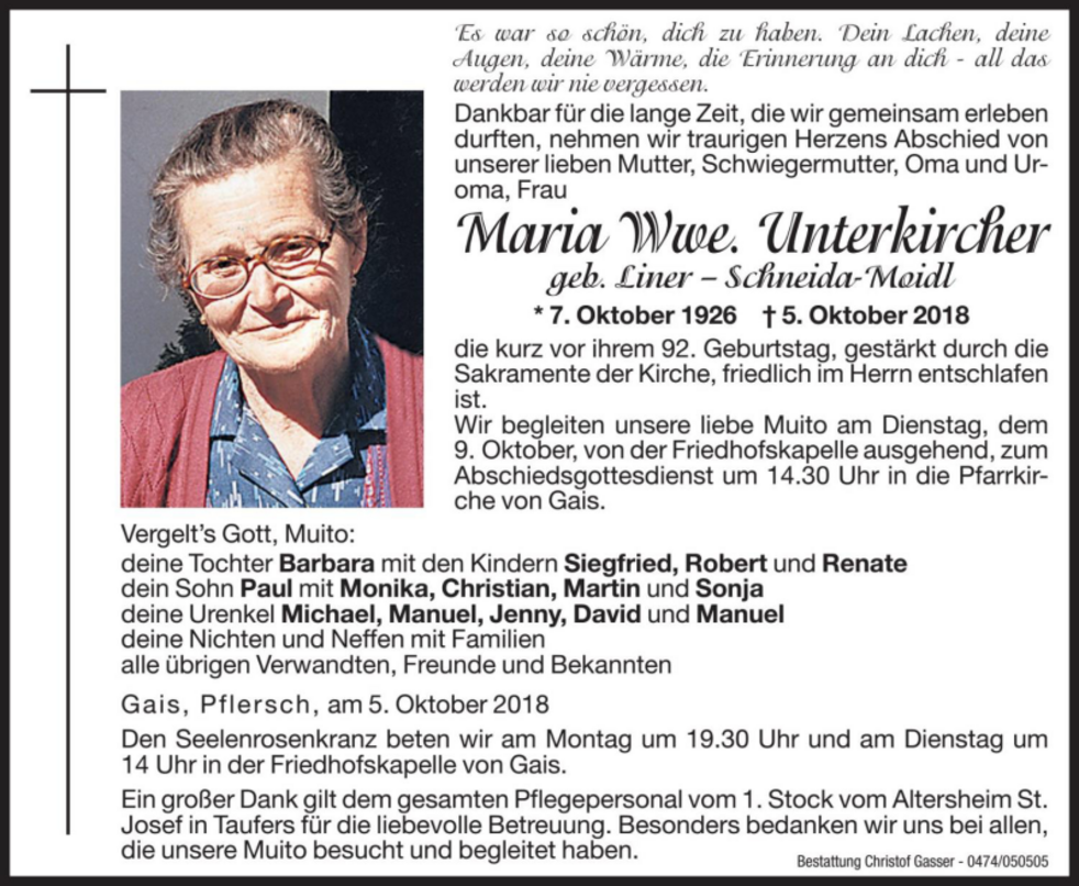 Maria Wwe. Unterkircher