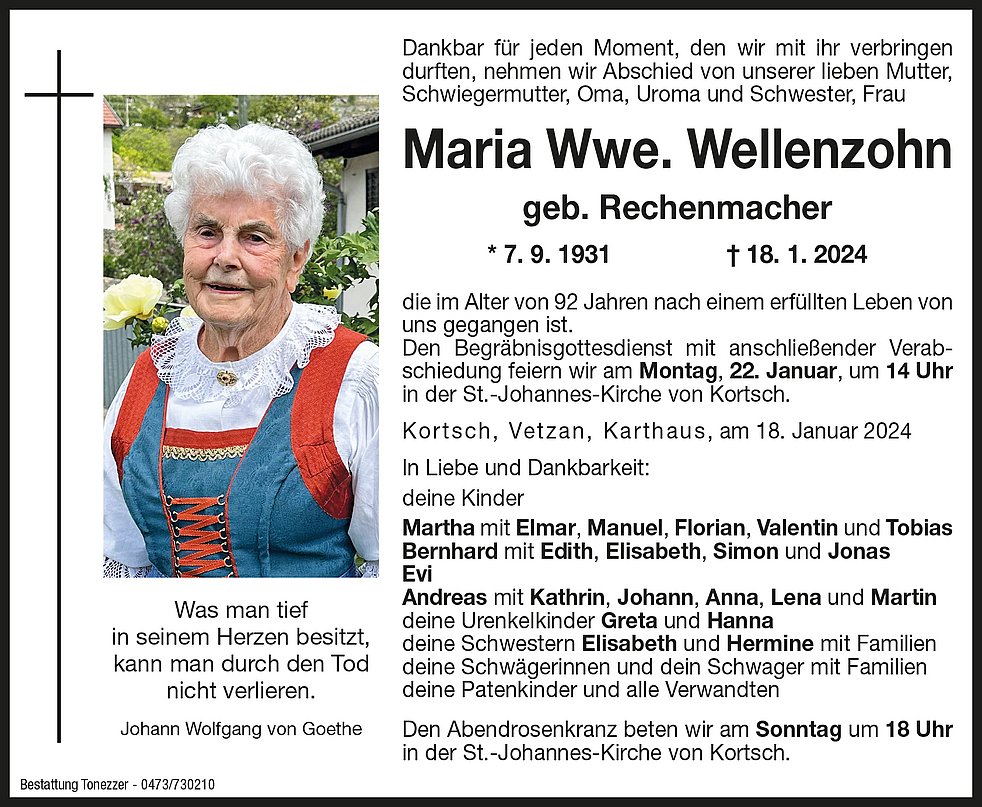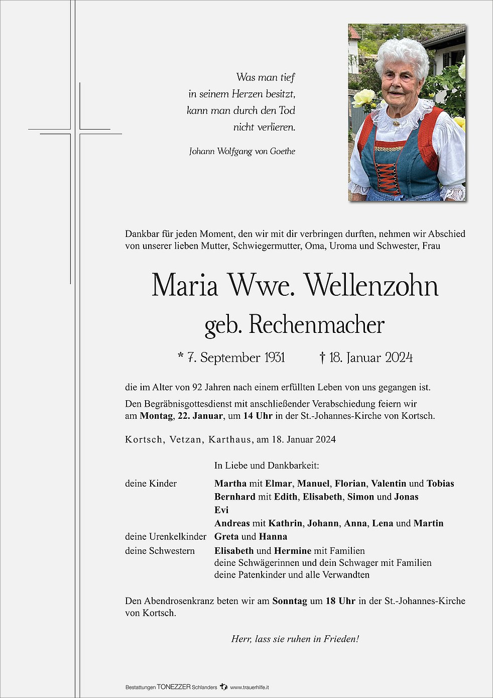 Liebe Evi, wir sind im Gedanken und im Gebet bei Dir und Deiner Familie und nehmen Anteil an der Trauer um Eure geschätzte Mama. Reinhard und Martha Zangerle