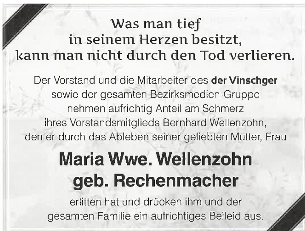 Mit den Worten von Ludwig Ganghofer möchte ich der gesamten Trauerfamilie meine herzliche Anteilnahme aussprechen.