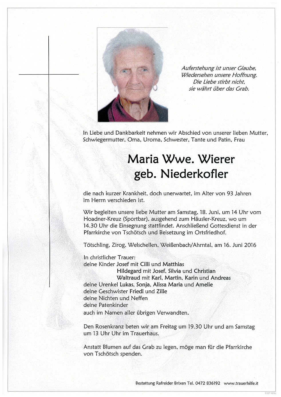 Wir begleiten unsere liebe Mutter am Samstag, 18. Juni, um 14 Uhr vom Hoadner-Kreuz (Sportbar), ausgehend zum Häusler-Kreuz, wo um 14.30 Uhr die Einsegnung stattfindet. Anschließend Gottesdienst in der Pfarrkirche von Tschötsch und Beisetzung im Ortsfriedhof.