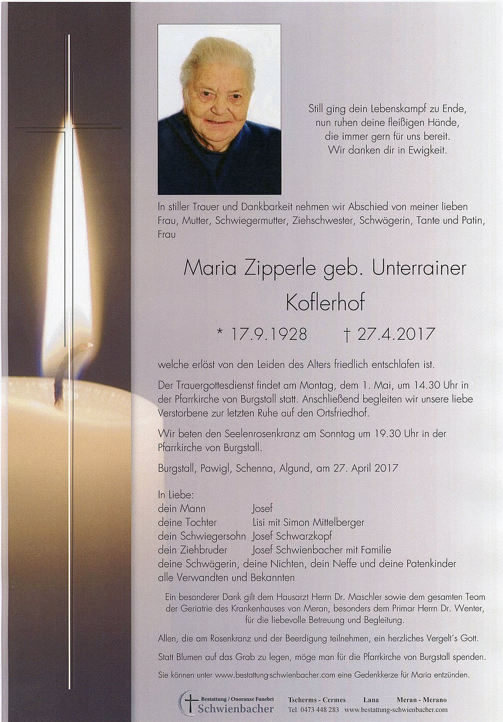 Sie können unter www.bestattung-schwienbacher.com eine Gedenkkerze für Maria entzünden.