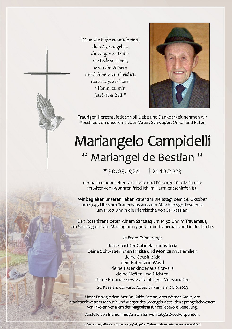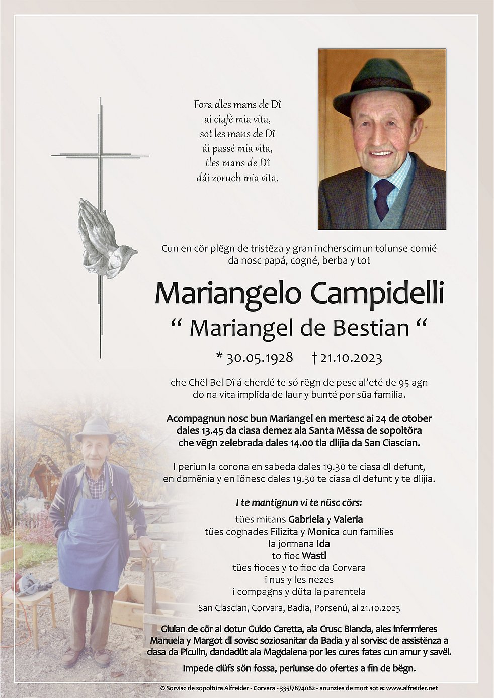 Valeria e Gabriella i se feji de mies condolianzes x la mort de osc caro pere! I ml recordi scioche porsona der da orei bun ..al gne pö sö Tamurs dala Tota a daide sie y al e na porsona da na grandiscima orente e der bun odöda !.Che al palsi tla pesc de Di