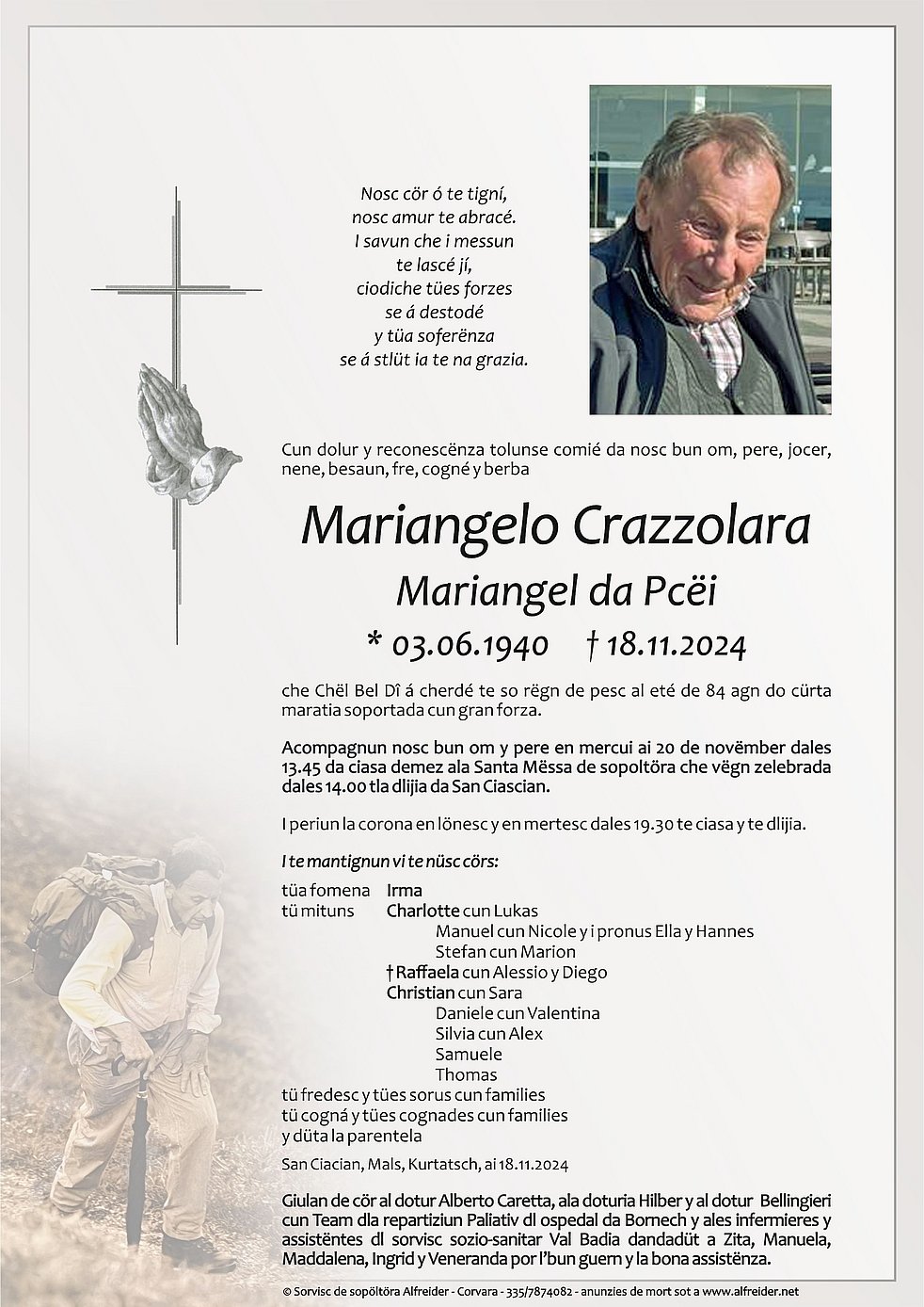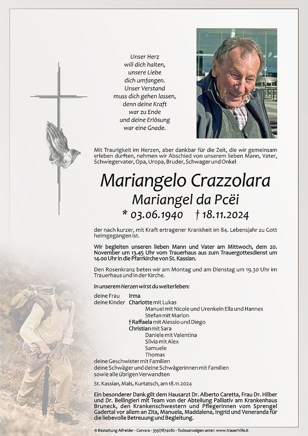 Begräbnisgottesdienst: 20.11. - 14:00 Uhr Pfarrkirche St. Kassian