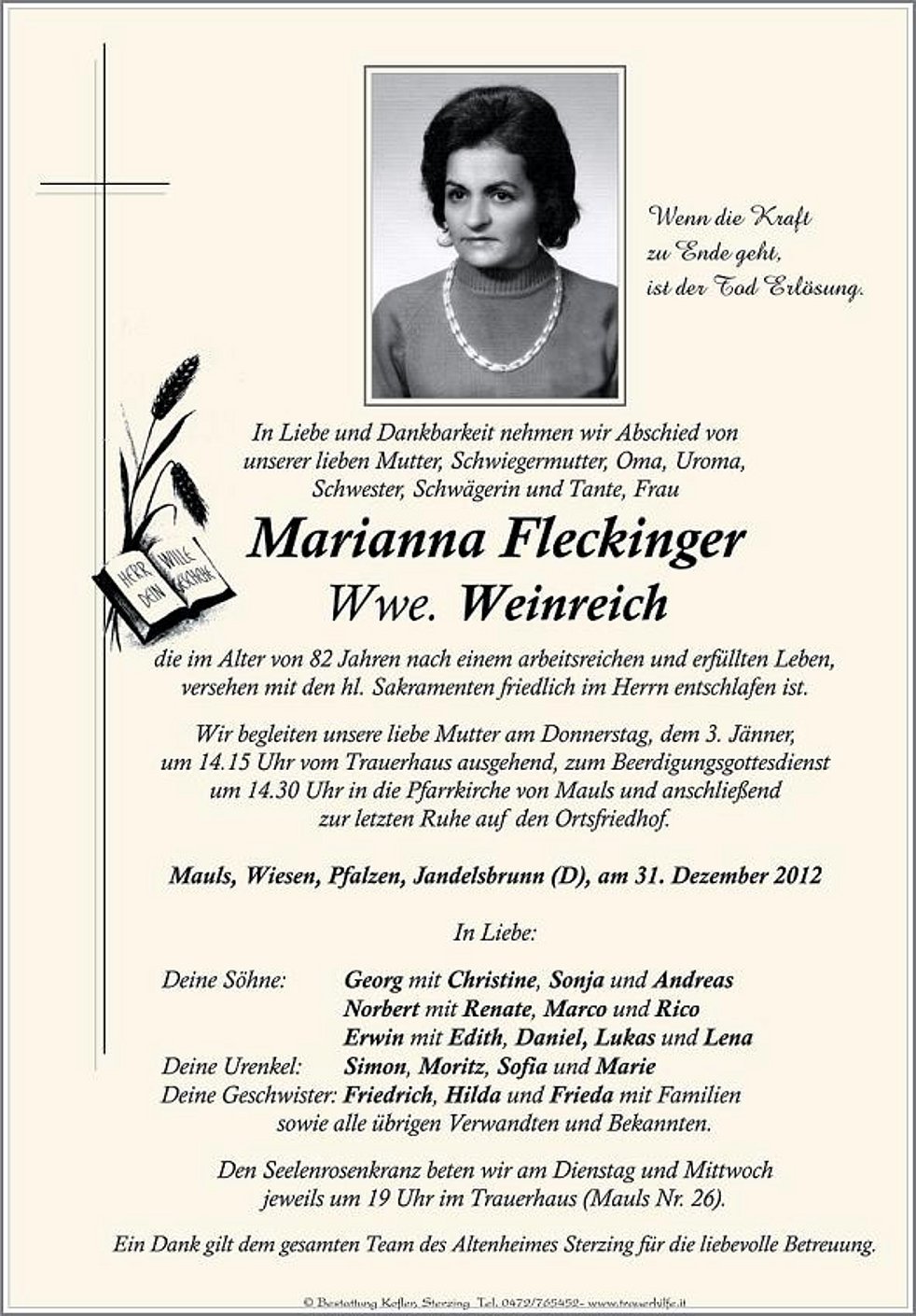Wir begleiten unsere liebe Mutter am Donnerstag, dem 3. Jänner, um 14.15 Uhr