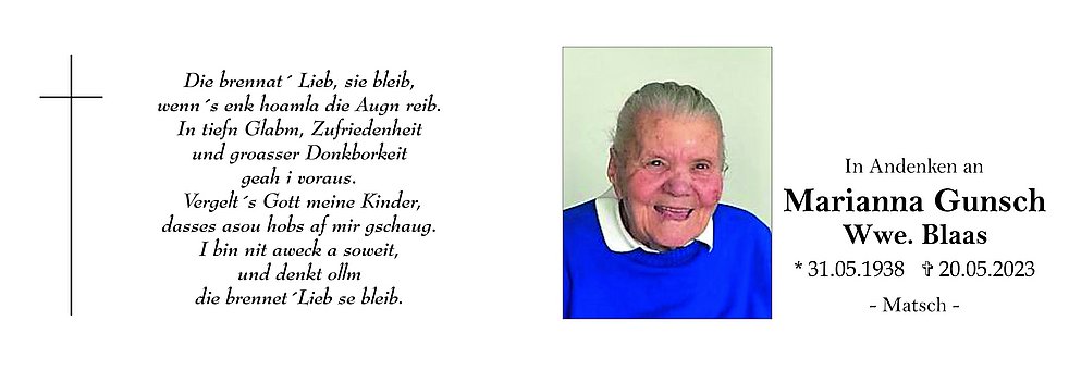 Ihr habt eurer Mama mit Herzblut und größter Fürsorge ermöglicht, ihre letzten Jahre in ihrem Zuhause in Matsch zu verbringen.