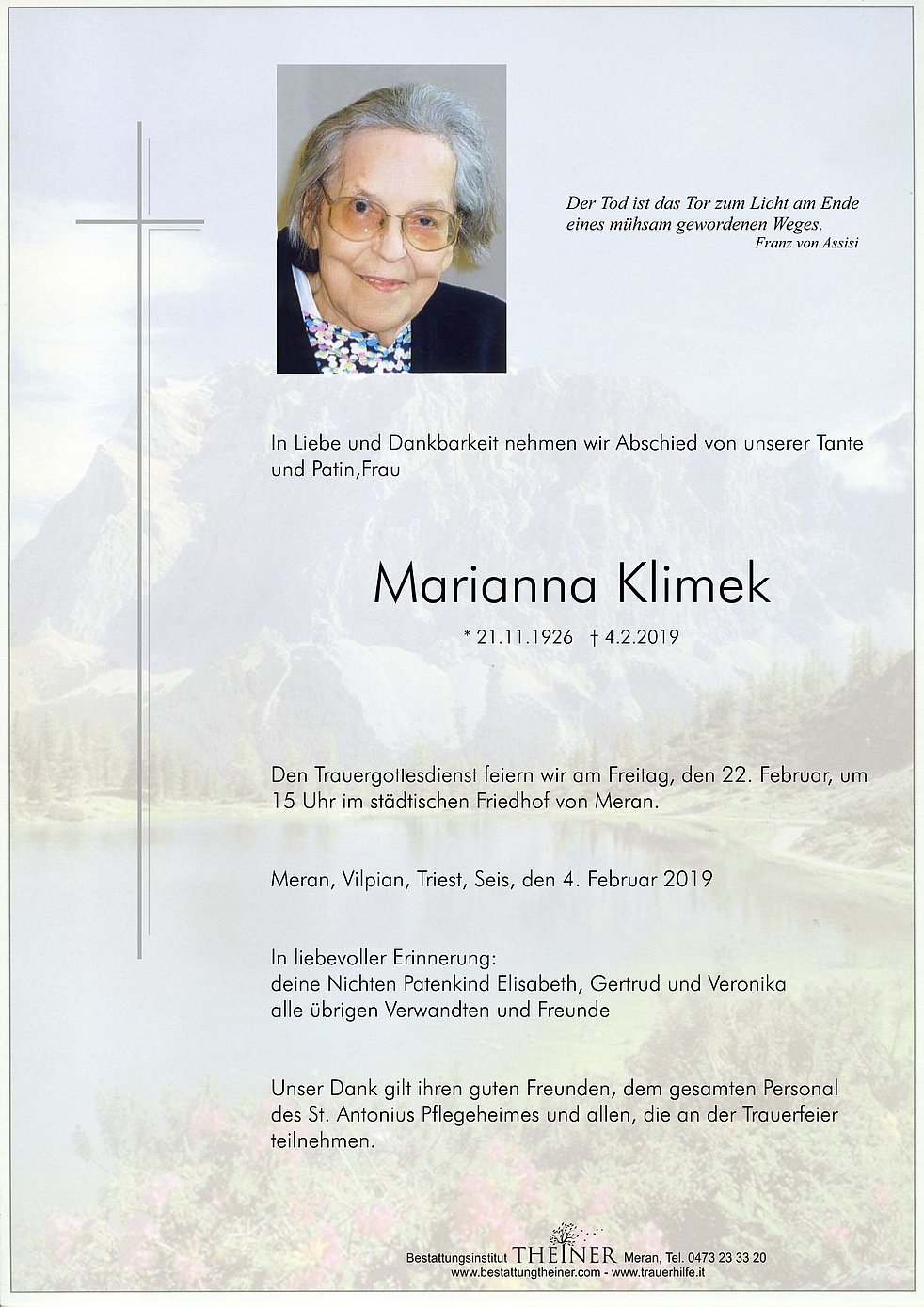 Den Trauergottesdienst feiern wir am Freitag, den 22. Februar, um 15 Uhr im städtischen Friedhof von Meran.