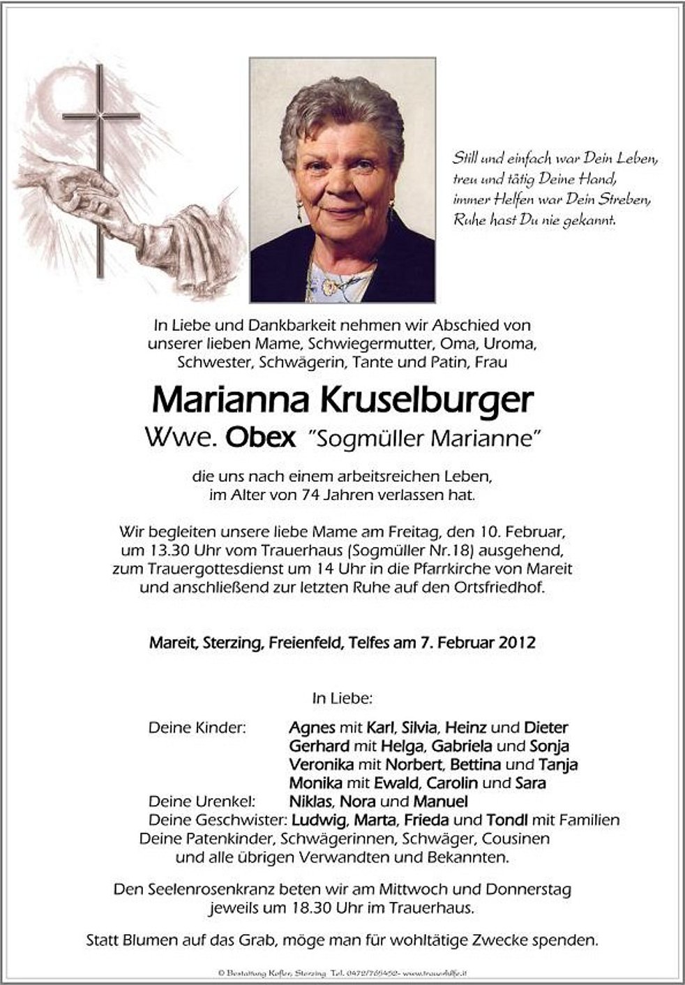 in die Pfarrkirche von Mareit und anschließend zur letzten Ruhe auf den Ortsfriedhof.