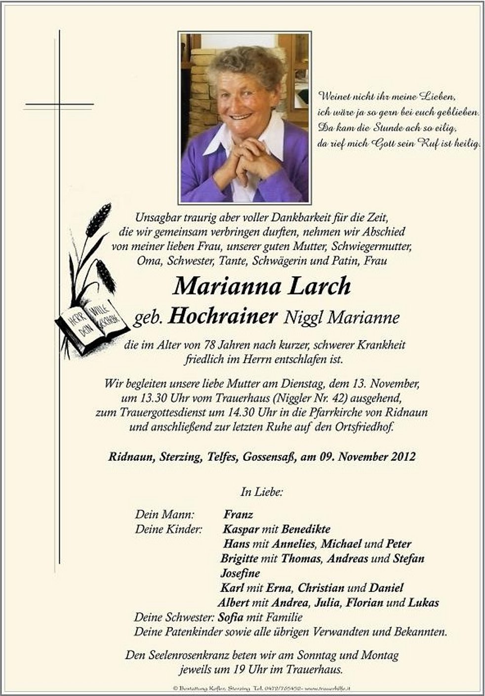 in die Pfarrkirche von Ridnaun und anschließend zur letzten Ruhe auf den Ortsfriedhof.