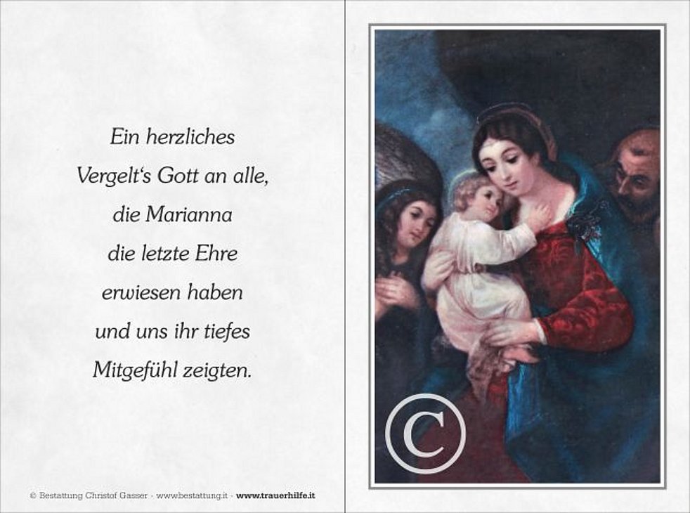 Vergelt‘s Gott allen, die an den Seelenrosenkränzen und an der Beerdigung von unserer lieben Marianna teilnehmen.