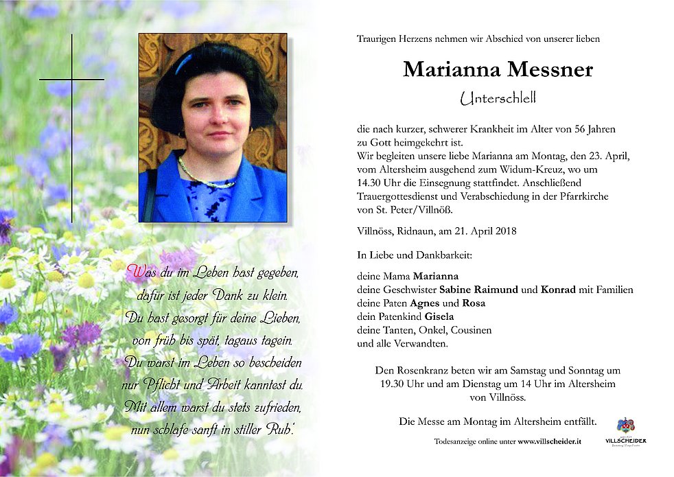 Wir begleiten unsere liebe Marianna am Montag, den 23. April,