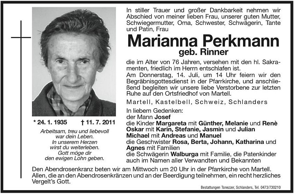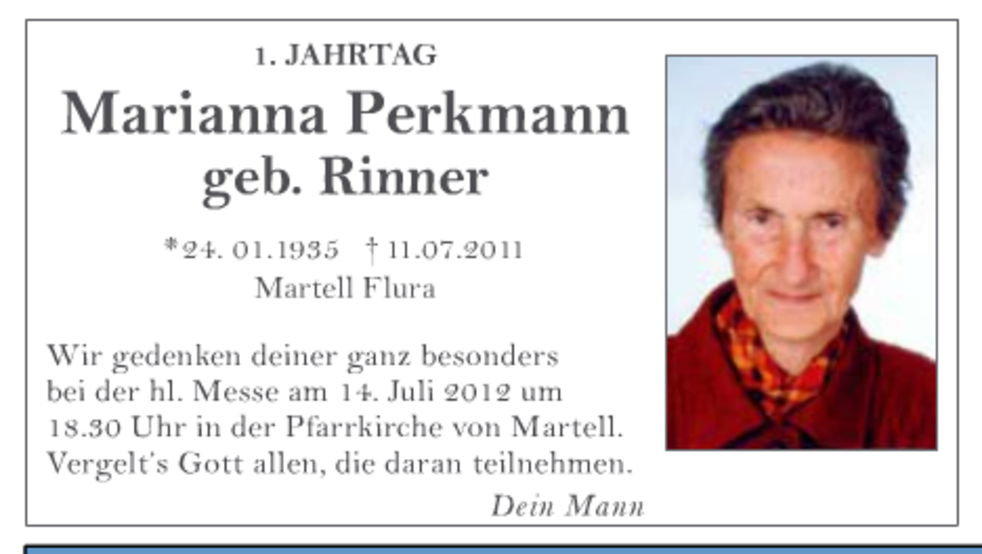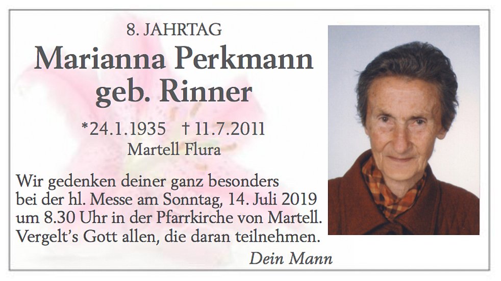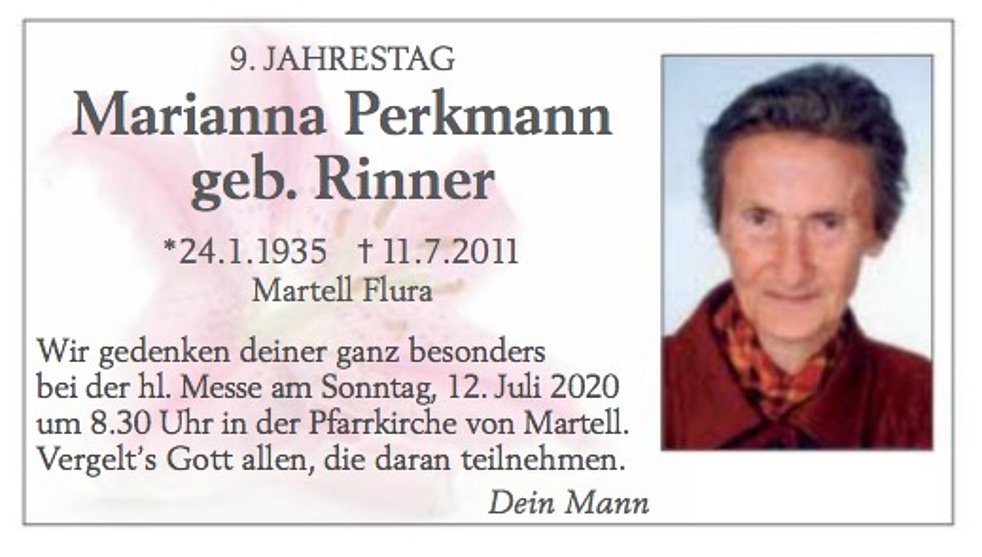 Jahresgottesdienst: 12.07. - 08:30 Uhr Pfarrkirche Martell