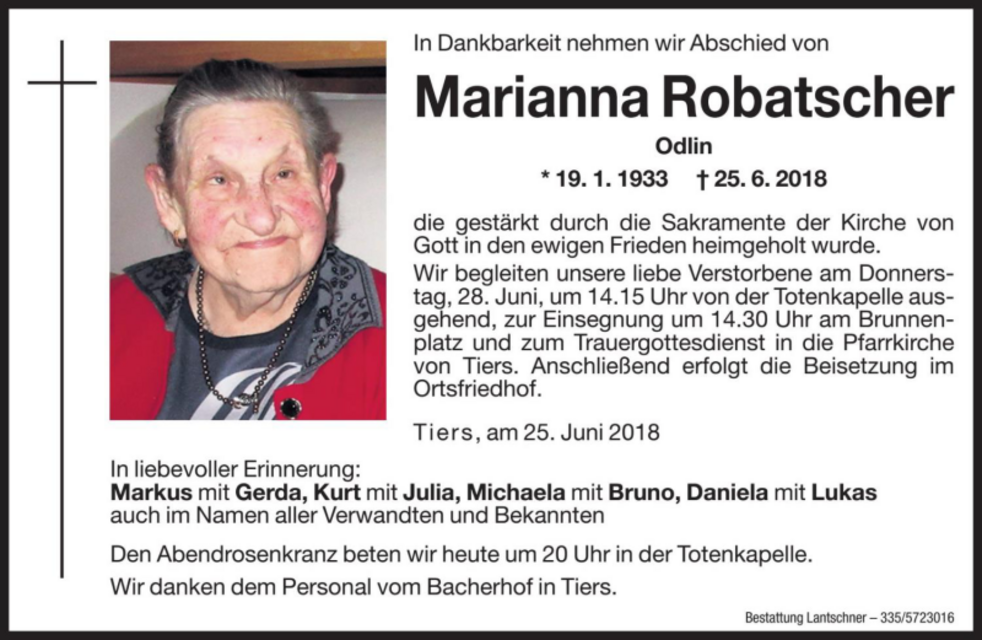 Wir begleiten unsere liebe Verstorbene am Donnerstag, 28. Juni,