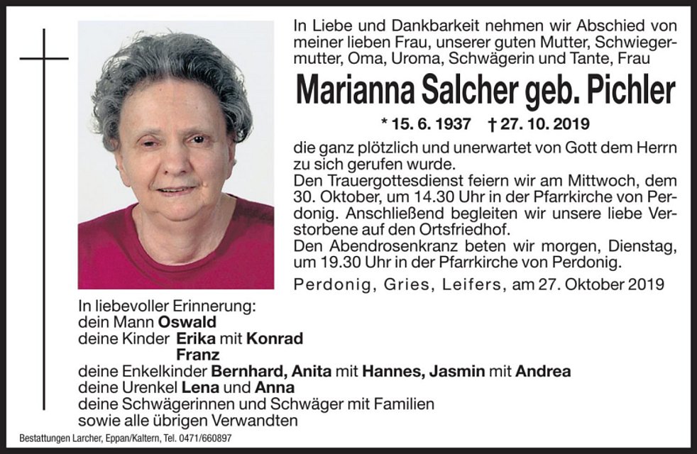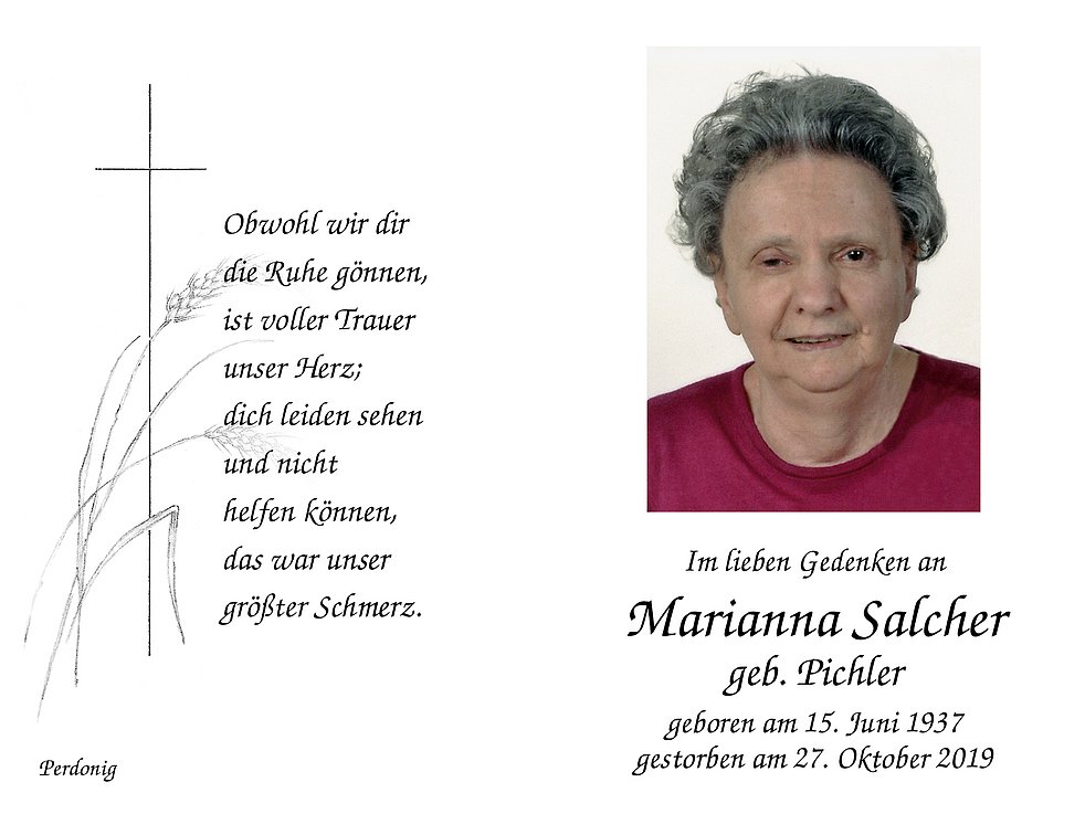 Den Trauergottesdienst feiern wir am Mittwoch, dem 30. Oktober um 14.30 Uhr in der Pfarrkirche von Perdonig.