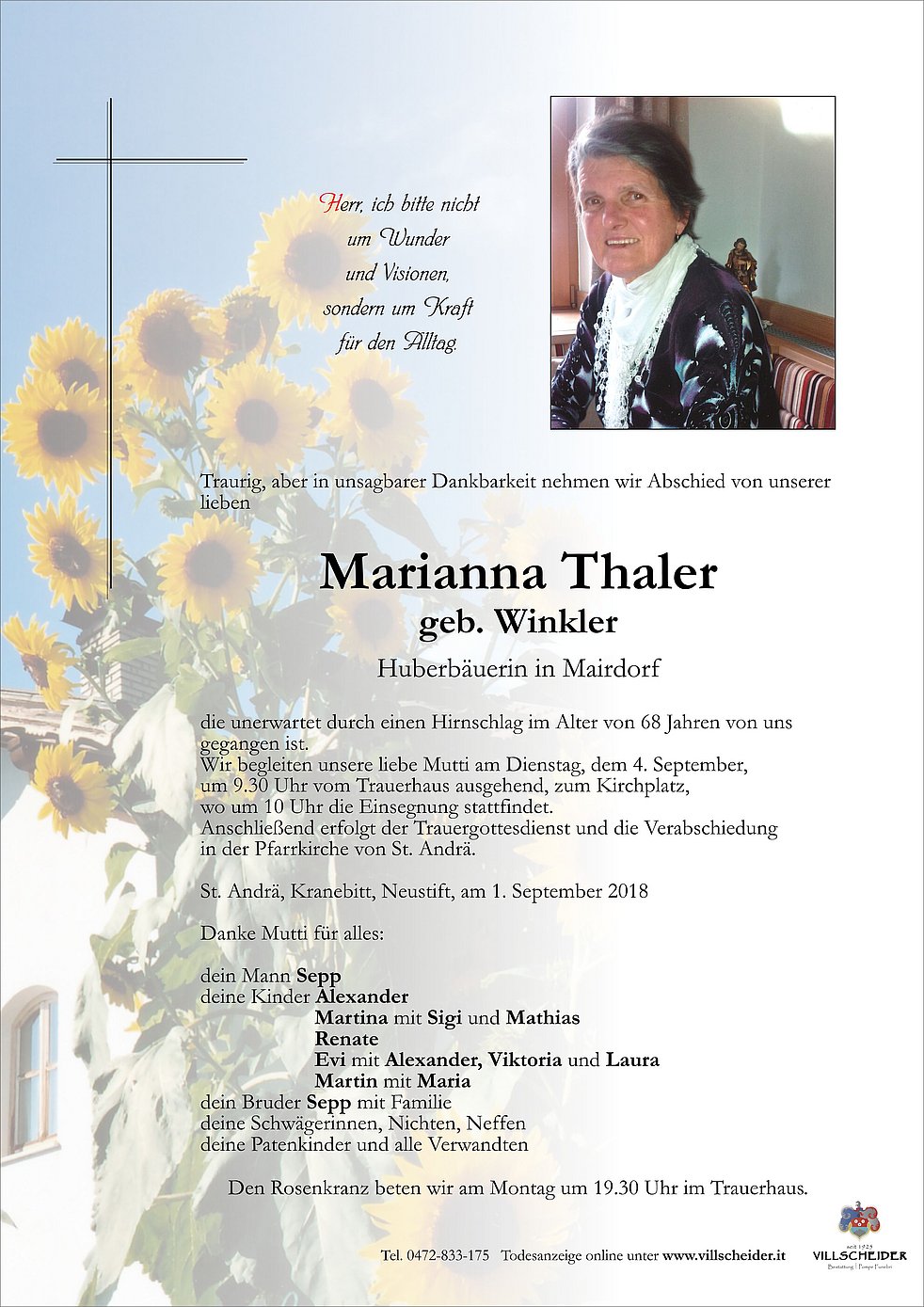 um 9.30 Uhr vom Trauerhaus ausgehend, zum Kirchplatz,