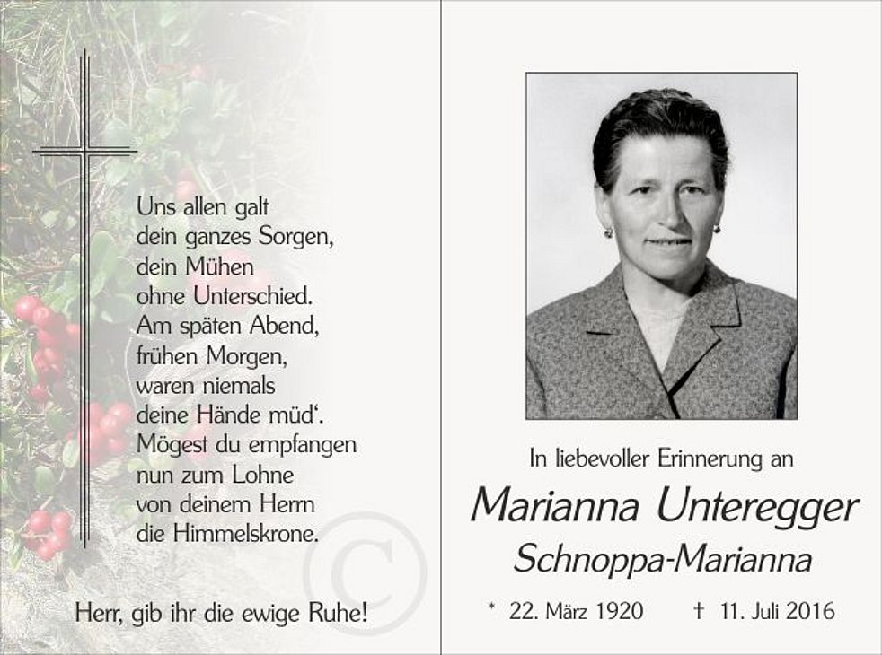 Ein Dank gilt der Hausärztin Dr. Claudia Kraler sowie dem gesamten Personal vom Altersheim Niederdorf für die jahrelange liebevolle Betreuung.