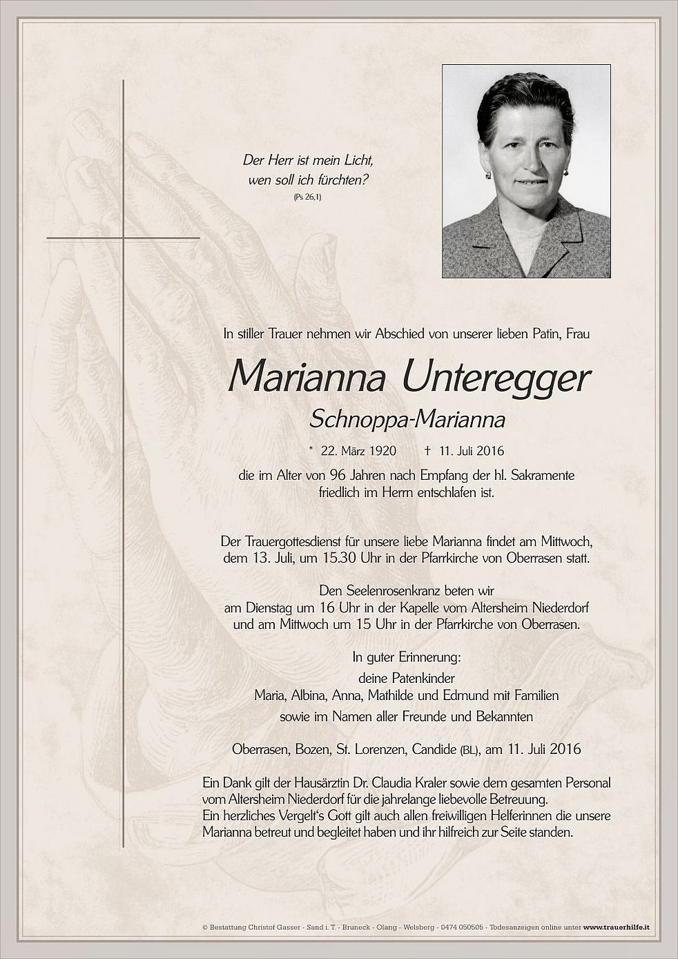 Der Trauergottesdienst für unsere liebe Marianna findet am Mittwoch,