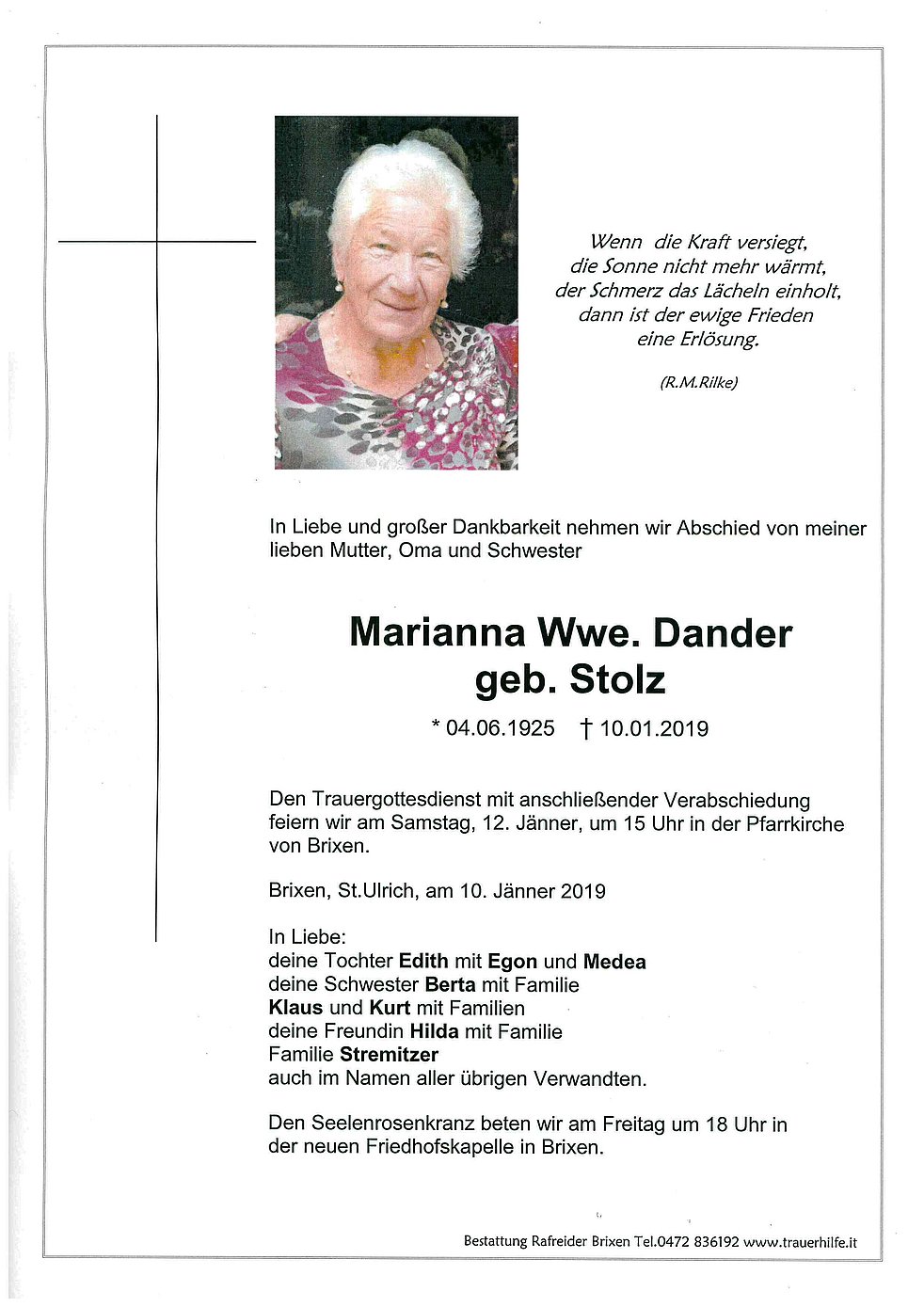 Den Trauergottesdienst mit anschließender Verabschiedung feiern wir am Samstag, 12. Jänner, um 15 Uhr in der Pfarrkirche von Brixen.