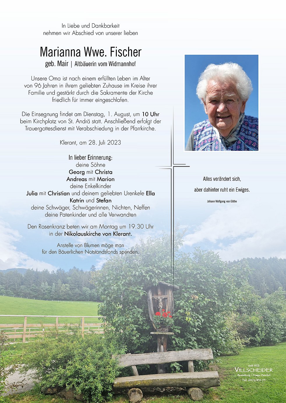 Trauerfeier: 01.08. - 10:00 Uhr St. Andrä
