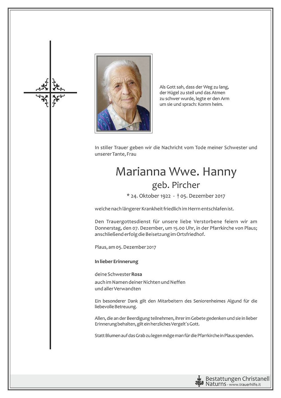 Den Trauergottesdienst für unsere liebe Verstorbene feiern wir am Donnerstag, den 07. Dezember, um 15.00 Uhr, in der Pfarrkirche von Plaus; anschließend erfolg die Beisetzung im Ortsfriedhof.