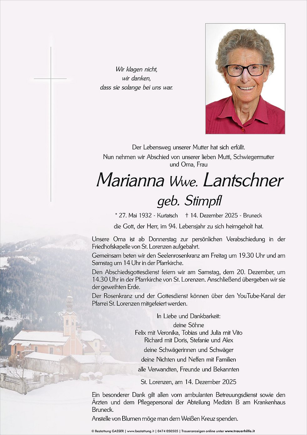 * 27. Mai 1932 - Kurtatsch † 14. Dezember 2025 - Bruneck