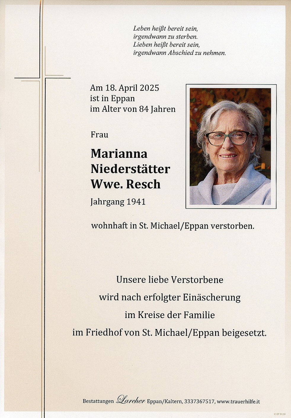 Die Beisetzung erfolgt im Kreise der Familie im Friedhof von St. Michael/Eppan.
