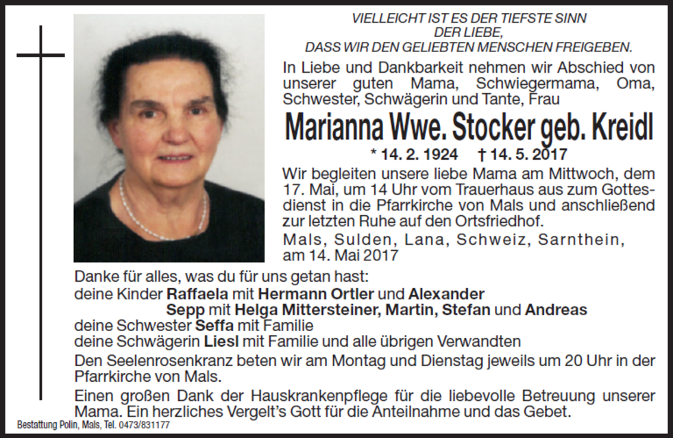 Ein herzliches Vergelts’ Gott für die Anteilnahme und das Gebet.