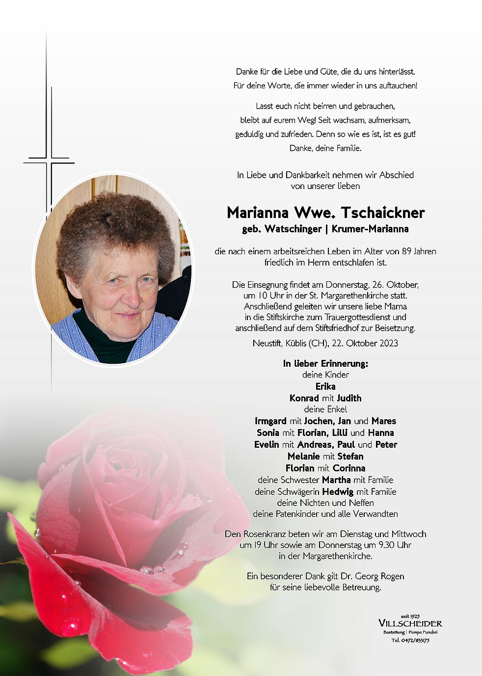 Begräbnisgottesdienst: 26.10. - 10:00 Uhr Neustift