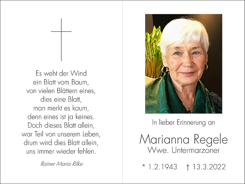 Ein besonderer Dank gilt dem Hauspflegedienst Europa und dem Team der Palliativmedizin für die liebevolle Betreuung. Ganz besonders danken möchten wir Mariedl und allen die ihr in dieser schweren Zeit im Gedanken nahe waren.
