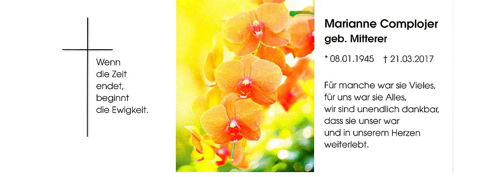 Ein herzliches Dankeschön dem Hausarzt Dr. Otmar Perkmann, den Ärzten und dem Pflegepersonal des Krankenhauses Brixen für die liebevolle Betreuung sowie allen, die am Rosenkranz und an der Beerdigung teilnehmen.