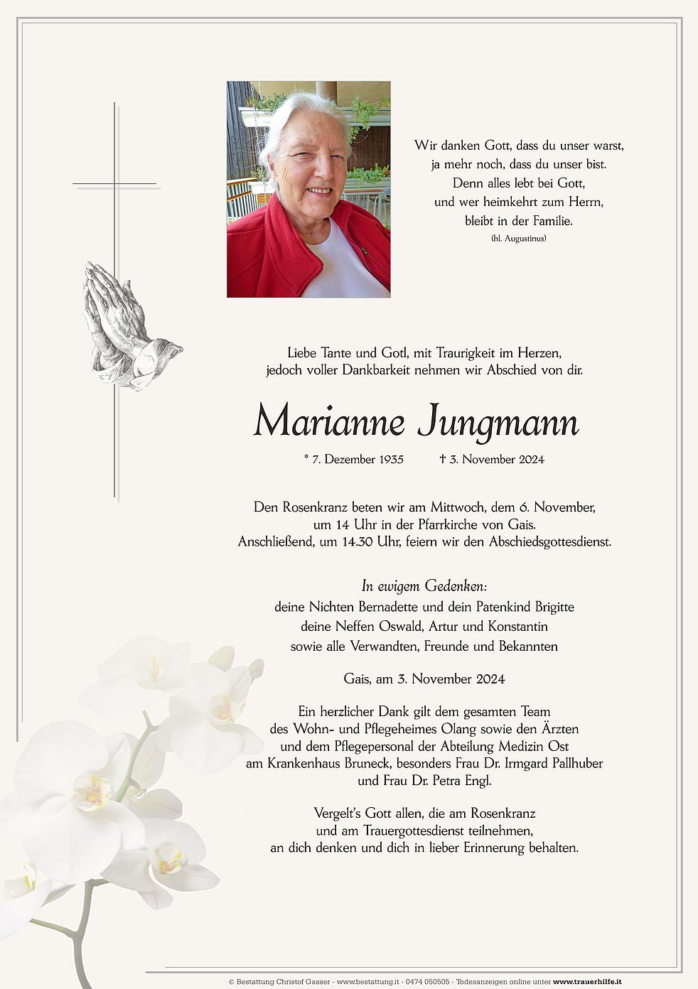 um 14 Uhr in der Pfarrkirche von Gais.