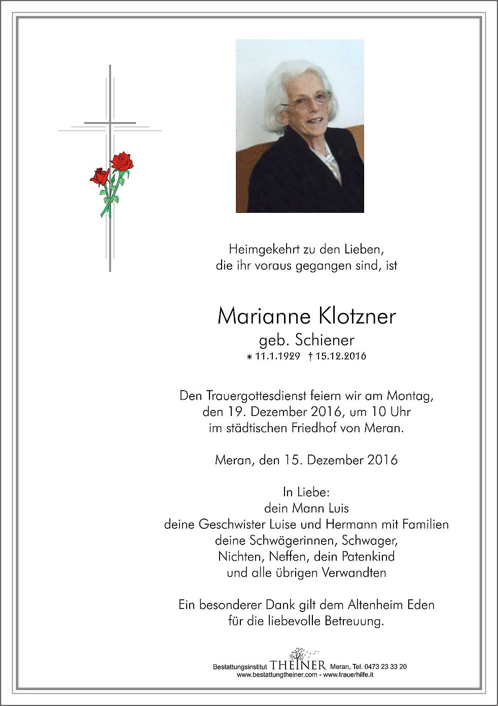 den 19. Dezember 2016, um 10 Uhr im städtischen Friedhof von Meran.
