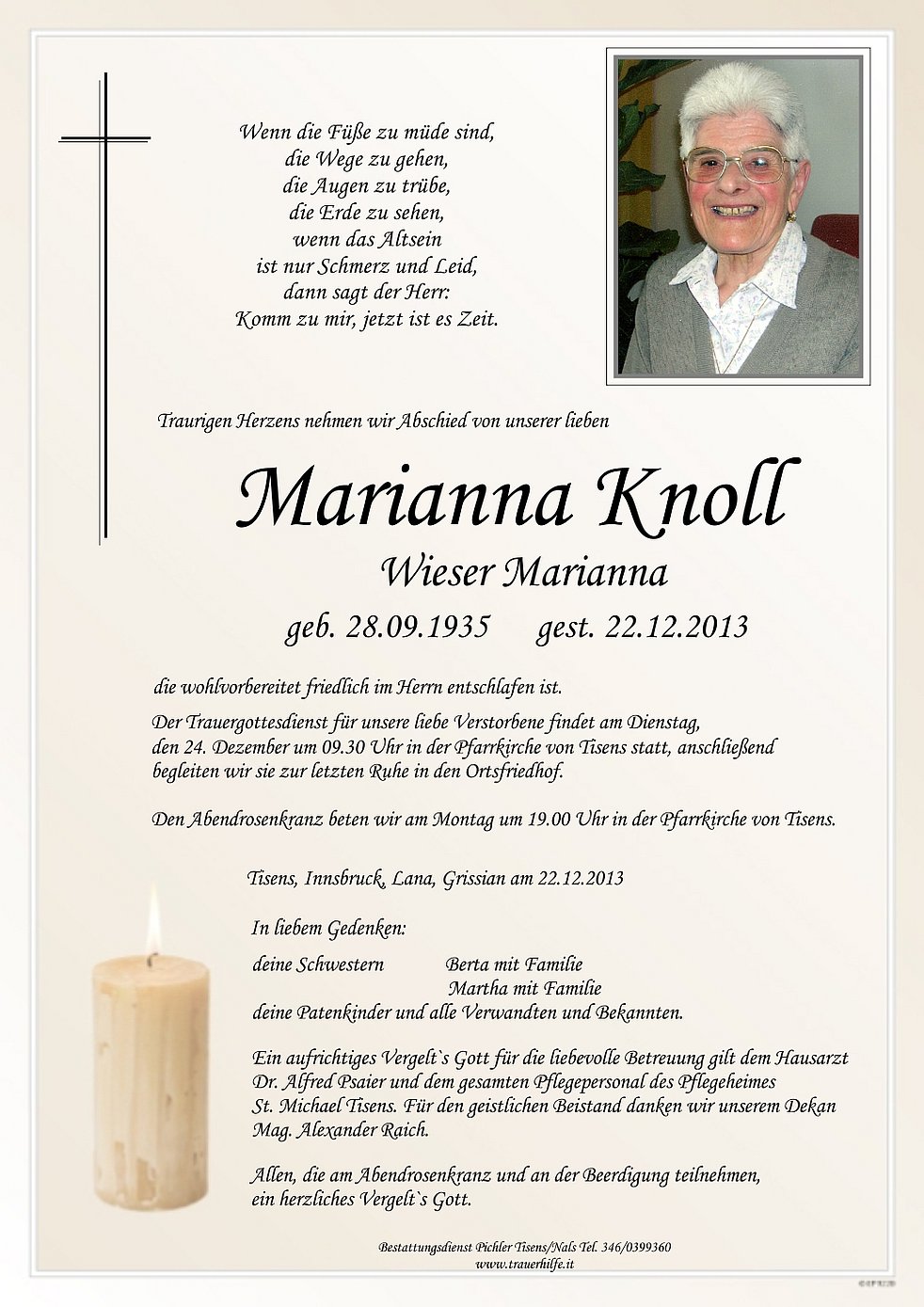 Der Trauergottesdienst für unsere liebe Verstorbene findet am Dienstag,