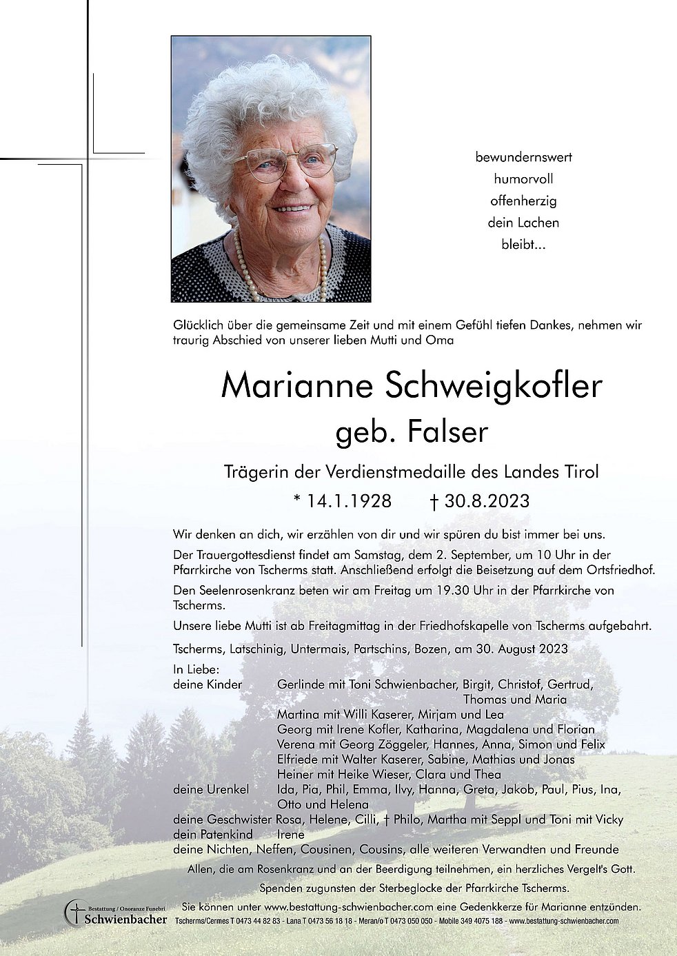 Sie können unter www.bestattung-schwienbacher.com eine Gedenkkerze für Marianne entzünden.