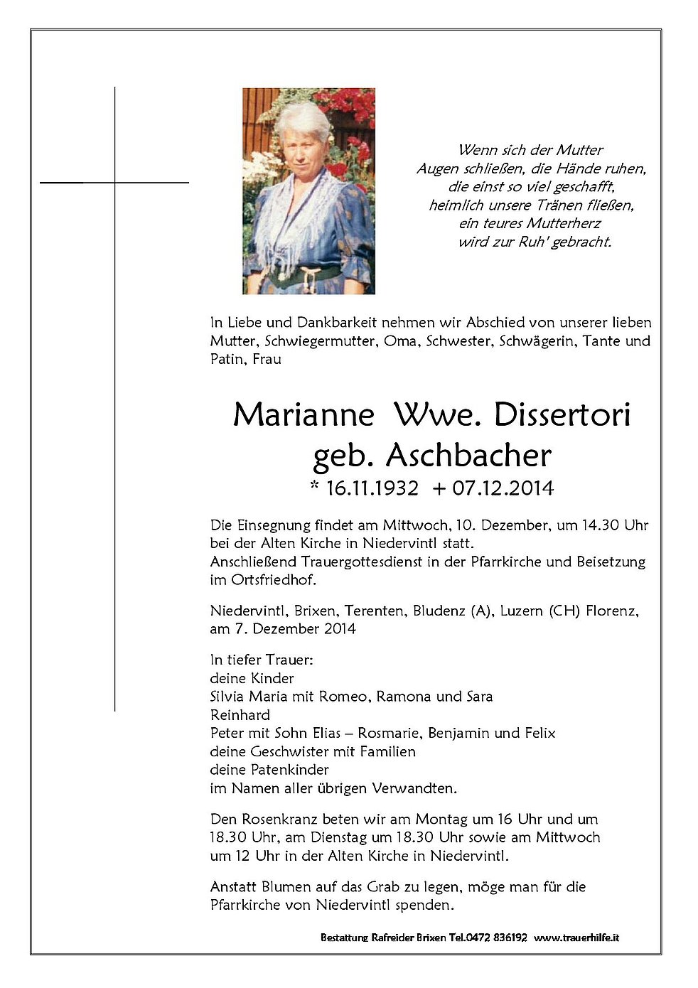 Niedervintl, Brixen, Terenten, Bludenz (A), Luzern (CH) Florenz, am 7. Dezember 2014