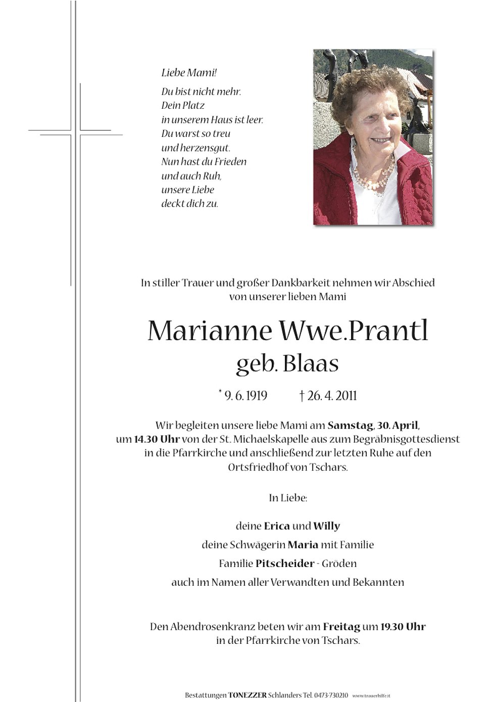 Wir begleiten unsere liebe Mami am Samstag, 30. April, um 14.30 Uhr von der St. Michaelskapelle aus zum Begräbnisgottesdienst in die Pfarrkirche und anschließend zur letzten Ruhe auf den Ortsfriedhof von Tschars.