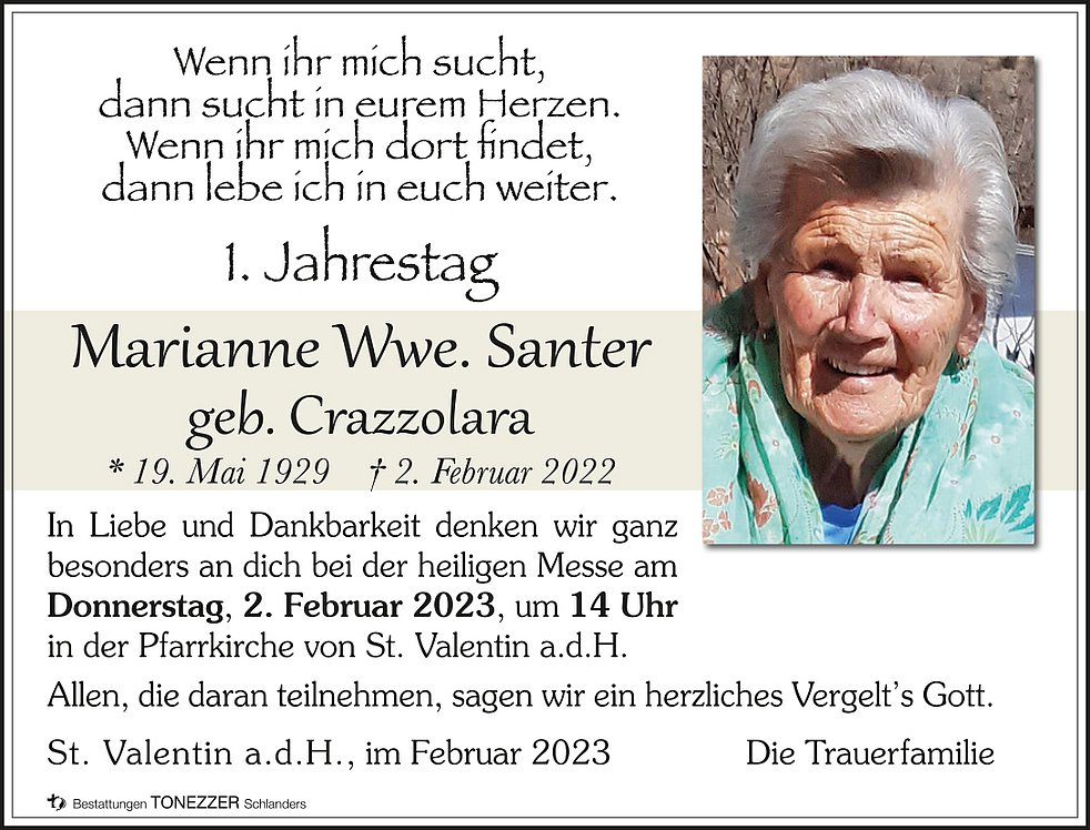 um 14 Uhr feiern wir den Begräbnisgottesdienst mit anschließender Verabschiedung in der Pfarrkirche von St. Valentin.