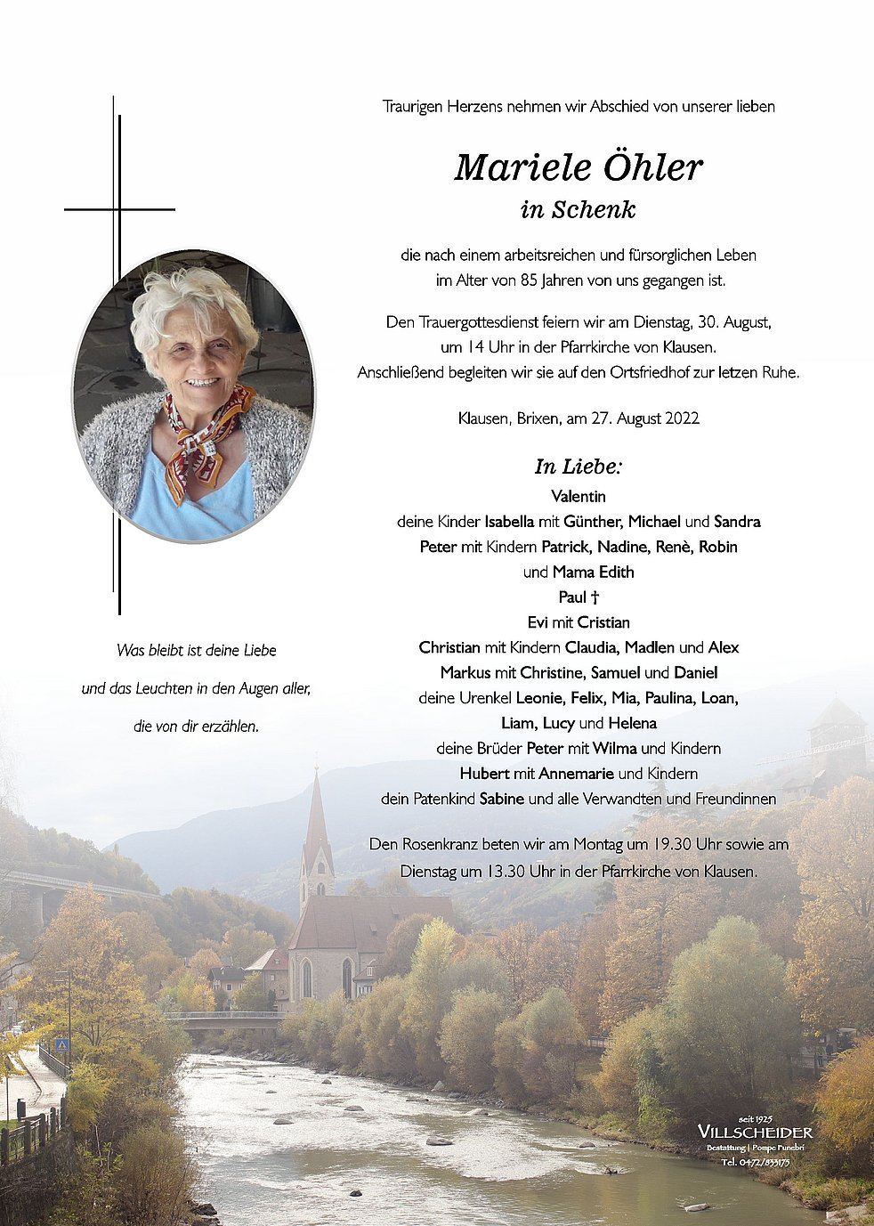 Liebe Isabella mit Familie, zum schmerzlichen Verlust Deiner lieben Mutter sprechen wir Dir hiermit unser tiefempfundenes Mitgefühl aus. Auch wenn der Schmerz überwiegt und Dich noch lange begleiten wird, bleiben wundervolle Erinnerungen an Deine geliebte Mutter.