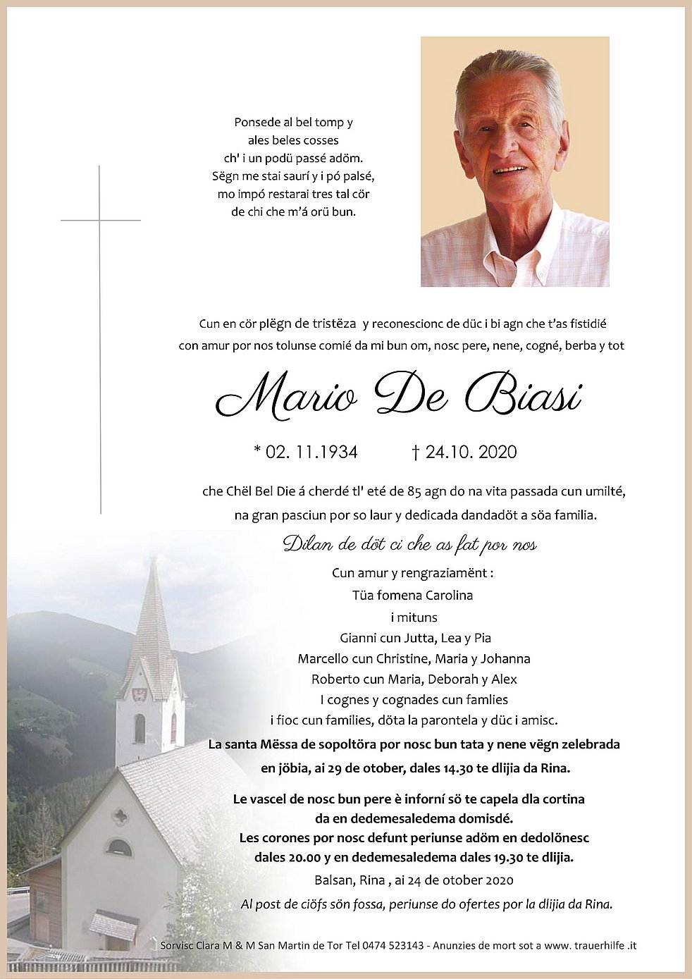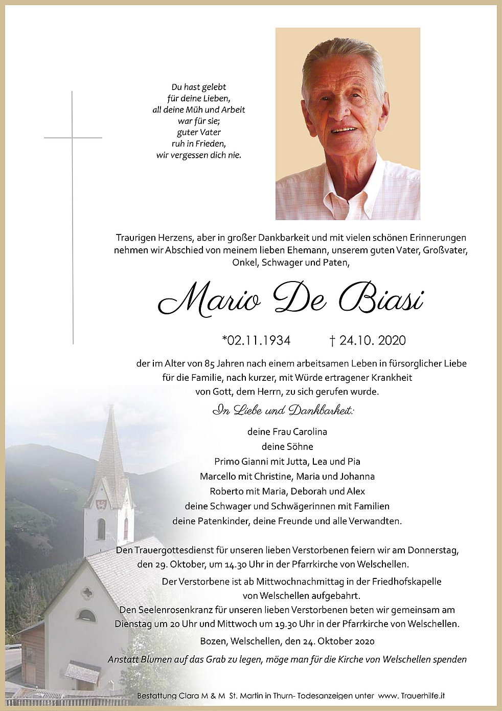 Den Trauergottesdienst für unseren lieben Verstorbenen feiern wir am Donnerstag, den 29. Oktober, um 14.30 Uhr in der Pfarrkirche von Welschellen.