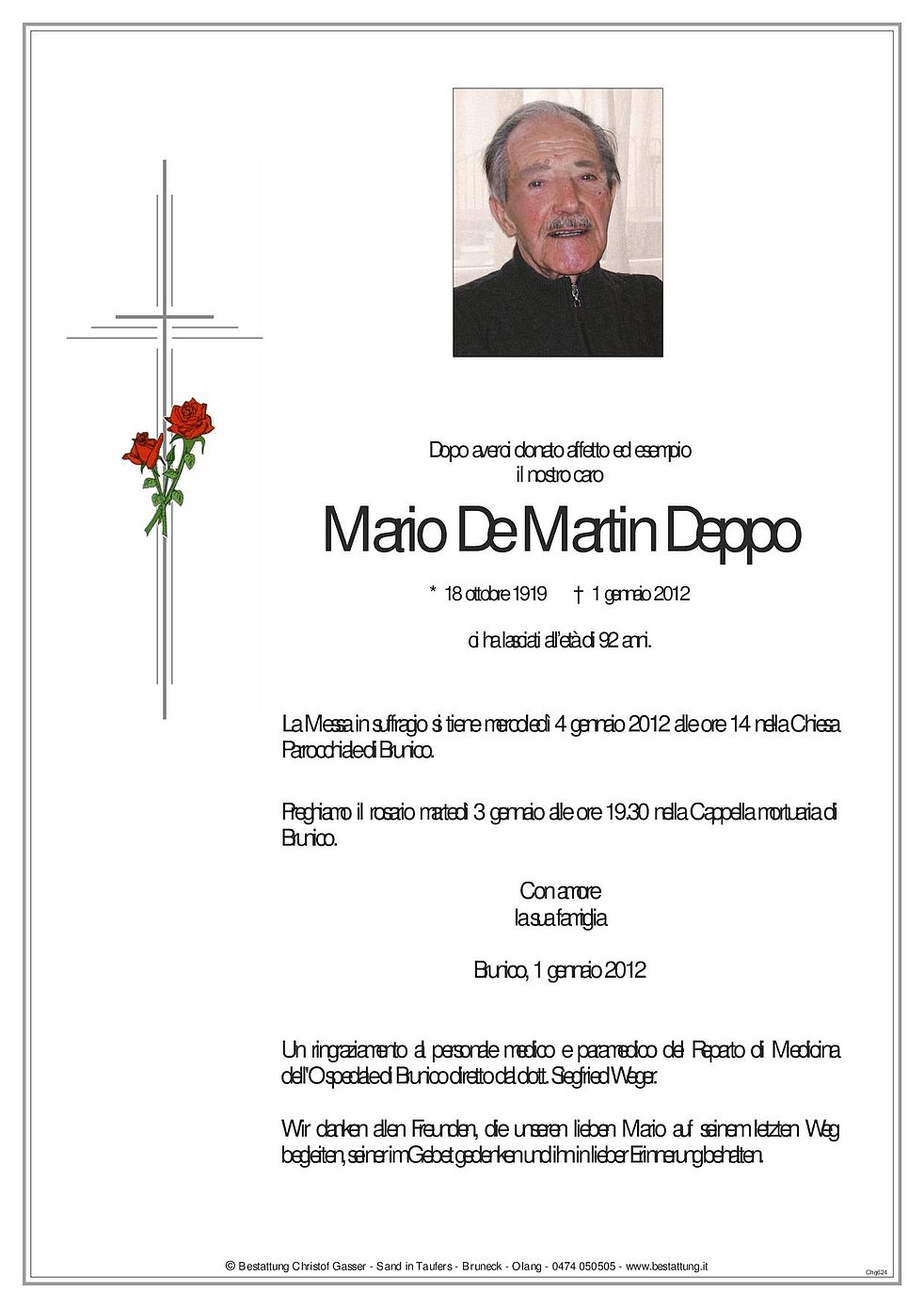 La Messa in suffragio si tiene mercoledì 4 gennaio 2012 alle ore 14 nella Chiesa Parrocchiale di Brunico.