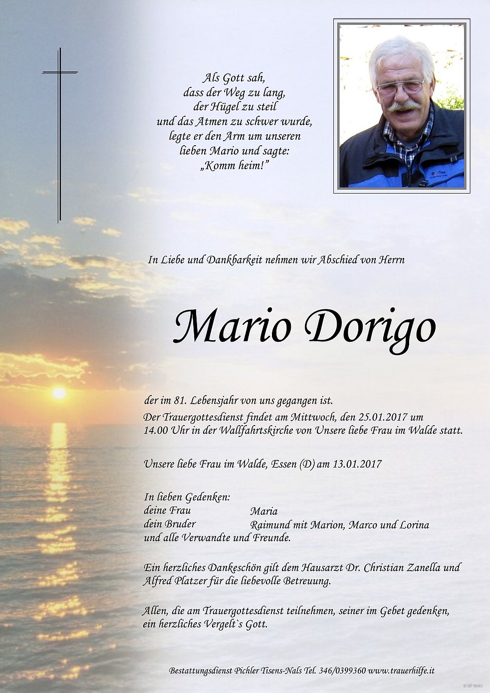 Der Trauergottesdienst findet am Mittwoch, den 25.01.2017 um