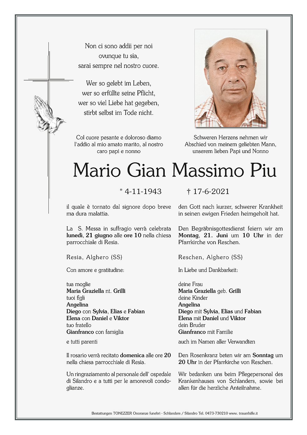 Liebe Graziella,liebe Trauerfamilie möchten Euch unser tiefstes Mitgefühl ausdrücken