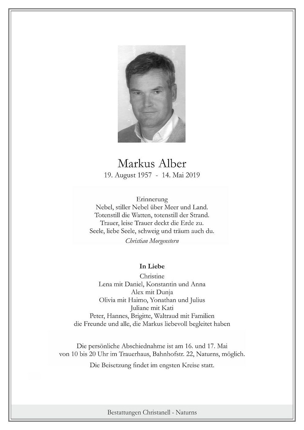 Wir werden Markus stets ein ehrendes Gedenken bewahren.