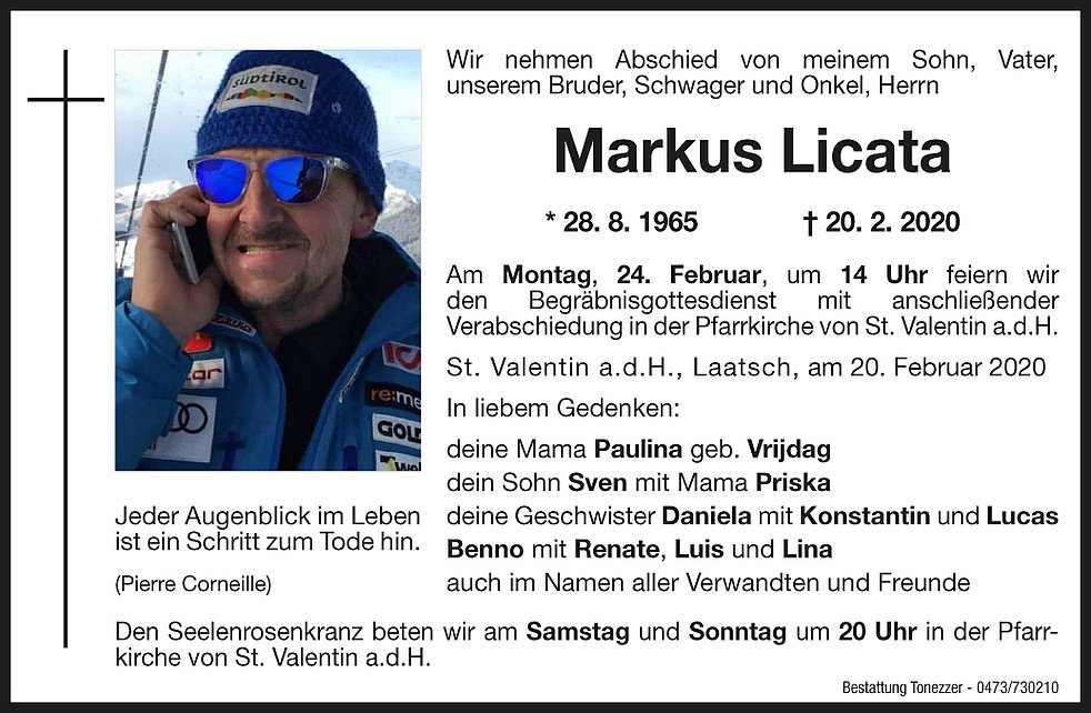 Am Montag, 24. Februar, um 14 Uhr feiern wir den Begräbnisgottesdienst mit anschließender Verabschiedung in der Pfarrkirche von St. Valentin a.d.H.